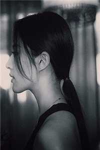 她不看我,低着头。