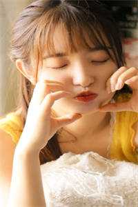 两排小白牙若隐若现藏在红唇后,嘴角弯起的弧度甜得能滴出蜜来。